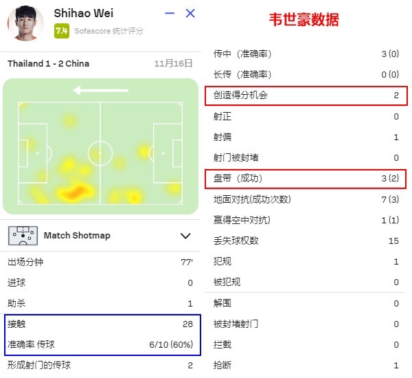 在上届世预赛的36强赛阶段,客场面对泰国队的关键首战上,就是韦世豪打出了自己国足生涯的最高水准,让球队可以在客场2比1赢球。